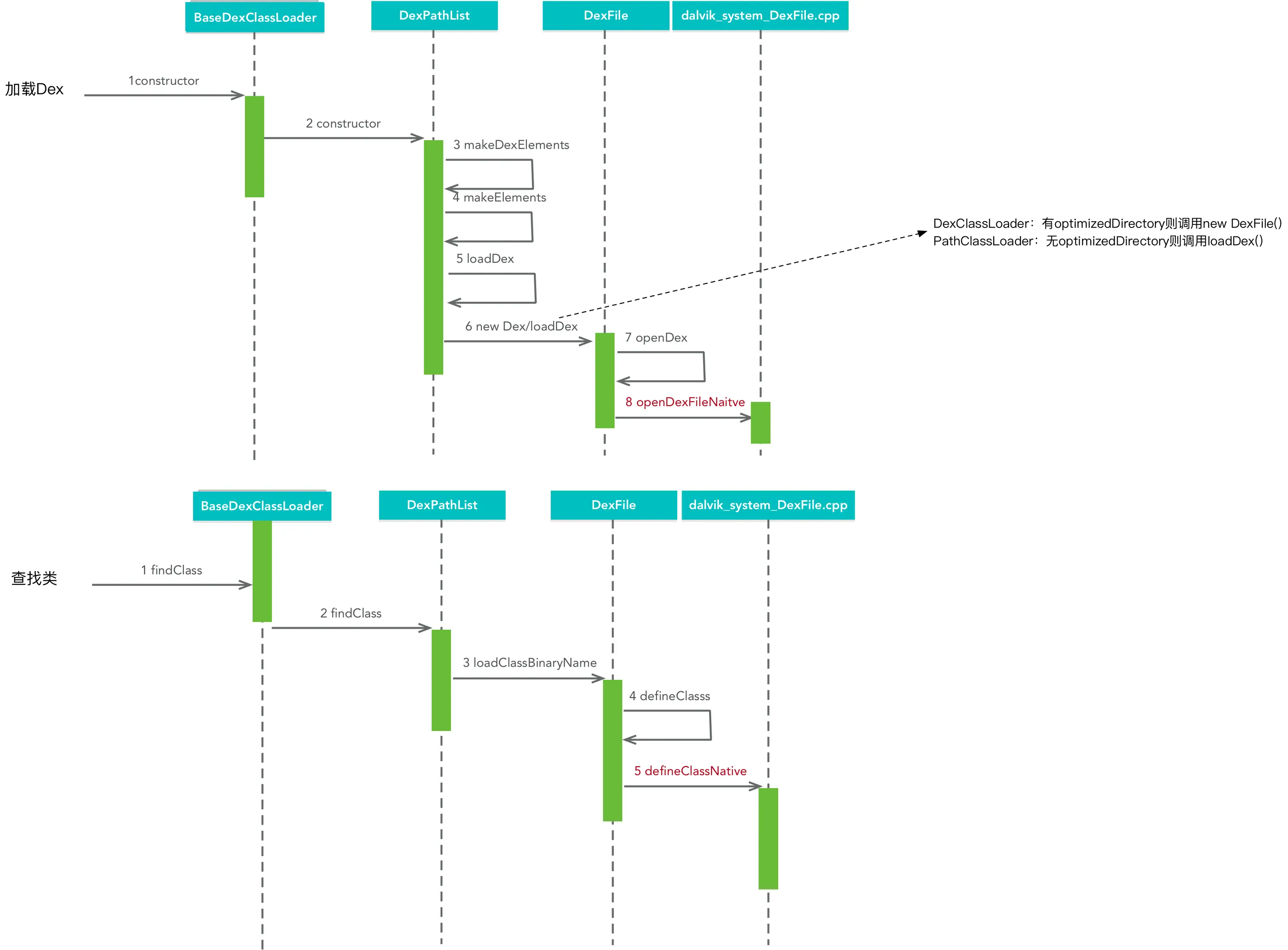我们来看看Dex文件加载、类的查找加载的序列图,如下所示: