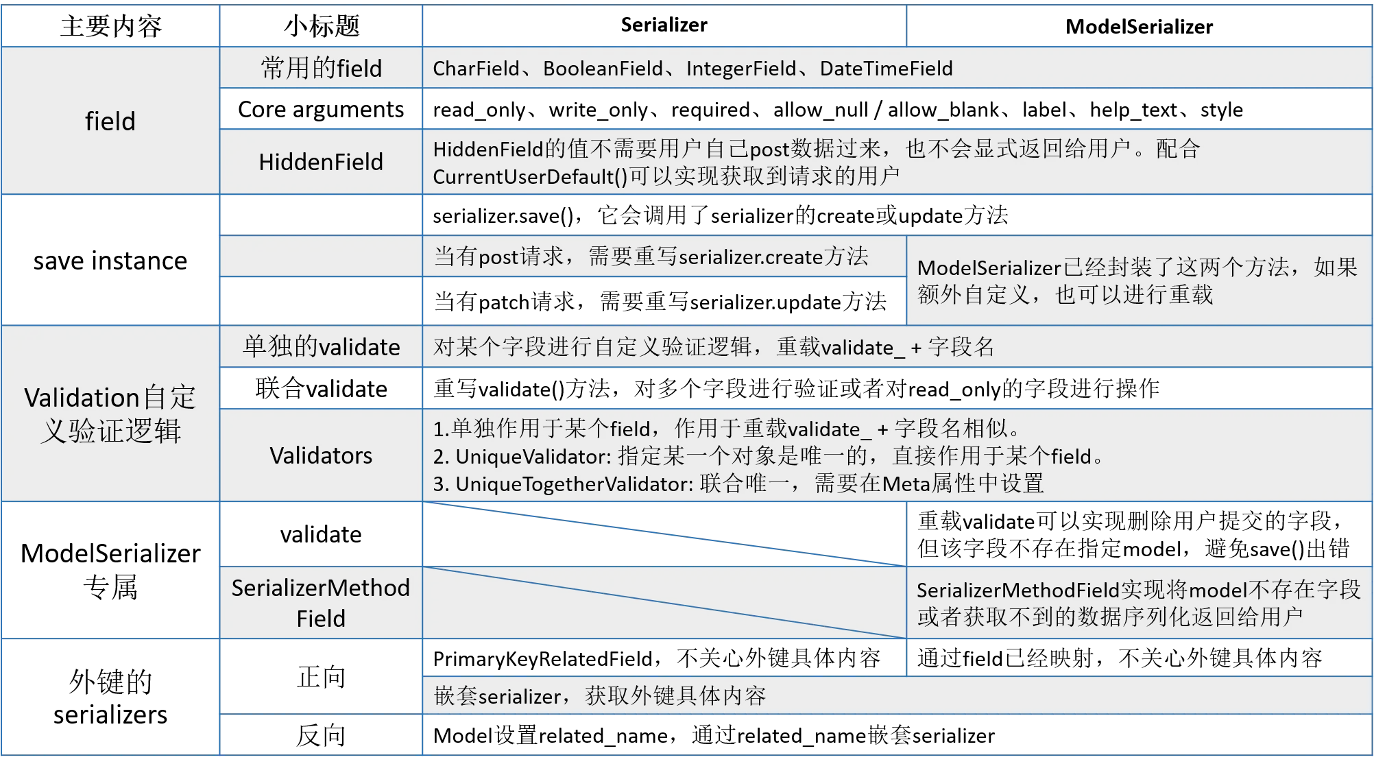 不同的是,我们在django中,form更强调对提交的表单进行一种验证,而serializer的field不仅在进行数据验证时起着至关重要的作用,在将数据进行序列化后返回也发挥着重要作用!!