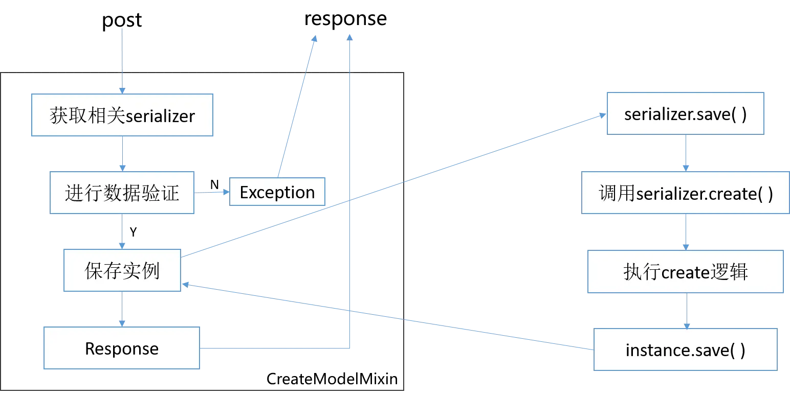 显然,serializer.save的操作,它去调用了serializer的create或update方法,不是mixins中的!!!我们看一下流程图(以post为例)