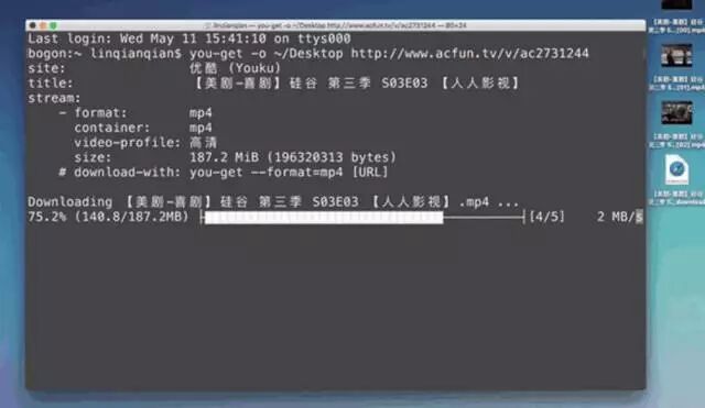 当然you-get要在python3环境下进行安装,用pip安装好后,在终端输入“you get+你想下载资源的链接”就可以等着收藏资源了。