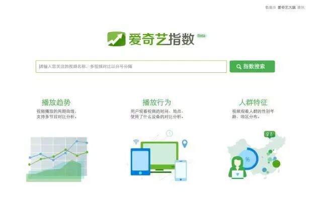 爱奇艺指数是专门针对视频的播放行为、趋势的分析平台,对于互联网视频的播放有着全面的统计和分析,涉及到播放趋势、播放设备、用户画像、地域分布、等多个方面。由于爱奇艺庞大的用户基数,该指数基本可以说明实际情况。