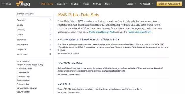 来自亚马逊的跨科学云数据平台,包含化学、生物、经济等多个领域的数据集。