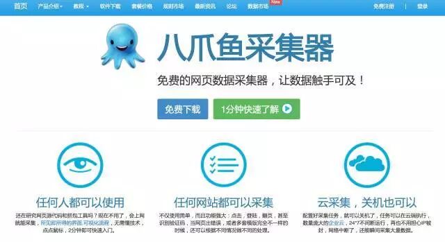 一款专业的互联网数据抓取、处理、分析,挖掘软件,可以灵活迅速地抓取网页上散乱分布的数据信息,并通过一系列的分析处理,准确挖掘出所需数据,最常用的就是采集某些网站的文字、图片、数据等在线资源。接口比较齐全,支持的扩展比较好用,懂代码的话,可以使用PHP或C#开发任意功能的扩展。
