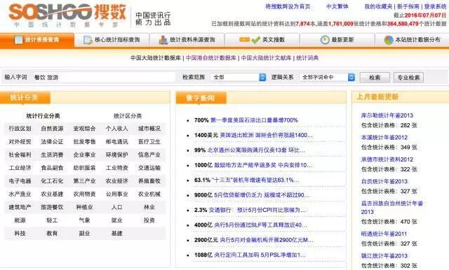 国家统计局的官方网站,汇集了海量的全国各级政府各年度的国民经济和社会发展统计信息,建立了以统计公报为主,统计年鉴、阶段发展数据、统计分析、经济新闻、主要统计指标排行等。