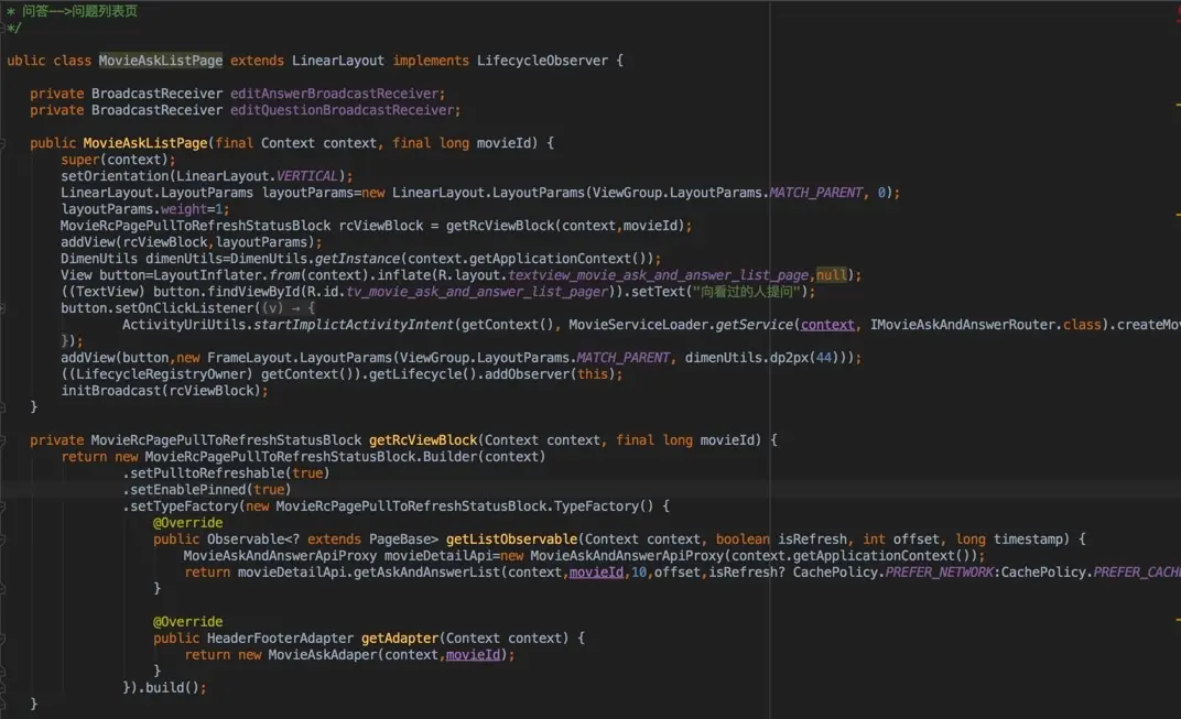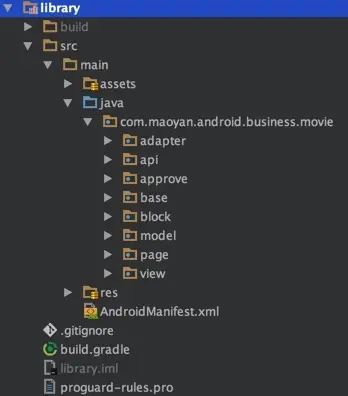 这个lib就是问答的业务lib。这不耦合具体的服务,只耦合服务接口。里面的页面(page包下)不是activity,而是view。 那么,这时候另外一个同事想把这个lib用到猫眼app上。怎么做呢?
