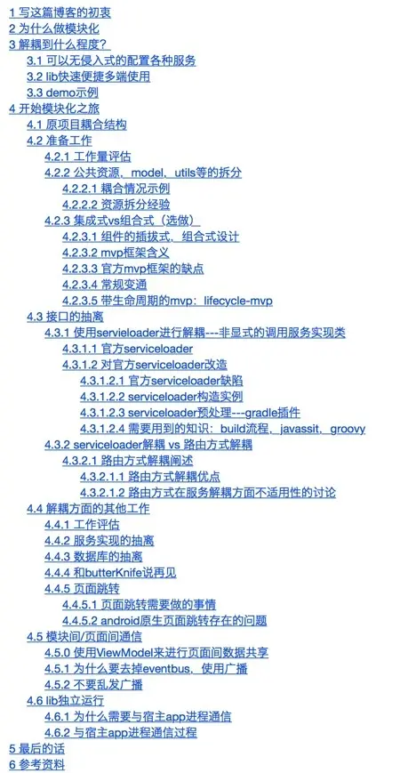 首先一句话概括:我想把这几个月做的事情记录下来,并且希望尽量详细,希望读者读了这篇文章能够知道项目进行模块化,项目改业务框架可能会遇到哪些问题,具体每个步骤都做什么,而不是大致的了解。