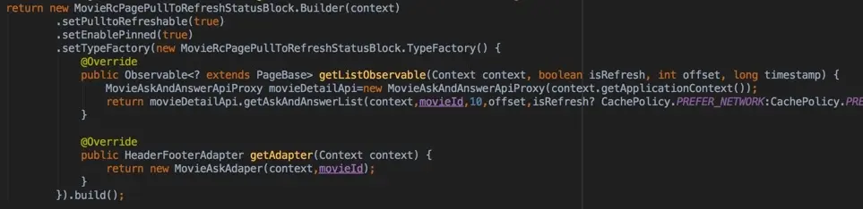 其实我的做法更大胆,或者更“懒”一些。我希望我这个MovieRcPagePullToRefreshStatusBlock build成功以后,放到页面中就能显示运行,自动加载数据了。就像小时候玩积木那样,组件与组件都是插拔即用式的。至于这个block是怎么加载数据的,使用者无需关系。使用者只需要拿到这个block,然后build时set进去需要的东西。放到页面中就可以运行了。可以参考这个作为示例: