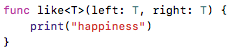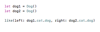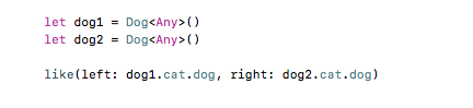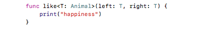 T必须为Animal类型,这样可以使like可以使用声明在Animal协议中的方法属性等。。。