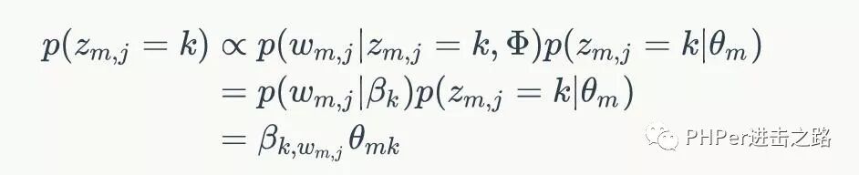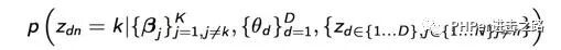 我们可以看到 p(zmj=k) 是一个多项分布,每一项的概率都是 beta*theta,而他们本身也是需要从 Dir 分布中采样出来的,一个自然的想法就是我们可以用估计值来代替,根据 Dir 分布我们能够很方便的计算出概率来。