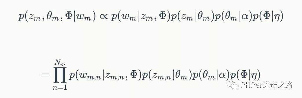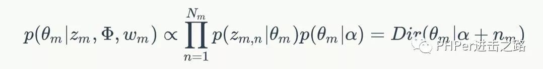 上面公式中是多项分布,而是 Dir 分布,我们知道 Dir 分布和多项分布是共轭分布,因此后验分布比较容易写出来。