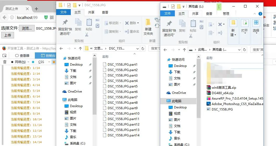 上次做了前端的ajax的上传文件技术,支持单文件,多文件上传,并对文件的格式和大小进行检查和限制。但是上次还有个心结一直没解开,就是本来前端浏览器的文件切割已经好了,但是后台文件重组一直没搞明白和处理好,所以就搁置了。主要也是对自己的代码负责,因为自己本身都没把这个技术搞透彻,外加各种测试都没通过,不想这样打脸。所以这个心结一直憋了好久,做梦都在想。终于功夫不负有心人,这周终于将这个问题干掉了,一个字:爽!!!下面咱们直接干!!