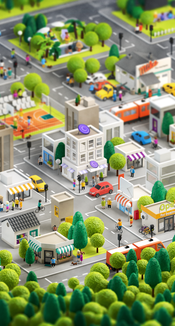设计也不必拘泥于二维的,可以尝试多种透视风格。等轴设计将物体分布在三个维度来隔离彼此,可以给创作带来更多机遇,或可一展宏图。