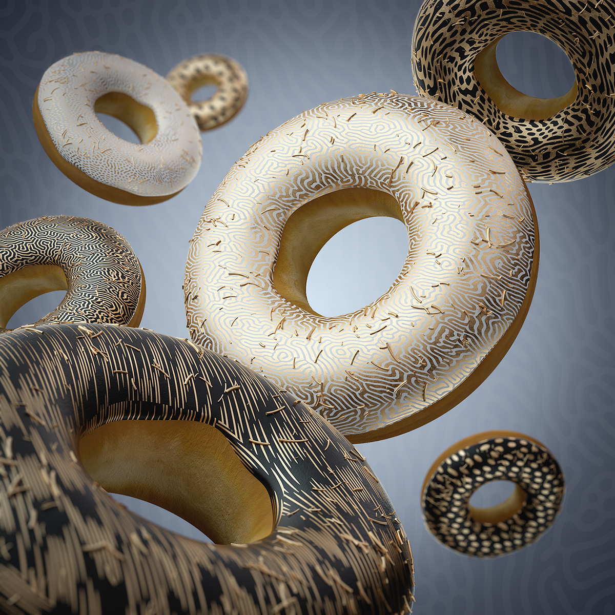 3D 用途广泛,例如现在 AR 和 VR 的沉浸式体验。不管是表现现实中的物体还是创作纯粹的艺术作品,3D 技术都能轻松胜任。圆润的抛光、细腻的表面和恰当的打光,达到了以假乱真的地步。3D 不仅可以给作品带来深度,还能给观者一种实感 —— 通过手头物品的联想来感知画面中物体的触感、运动趋势等。