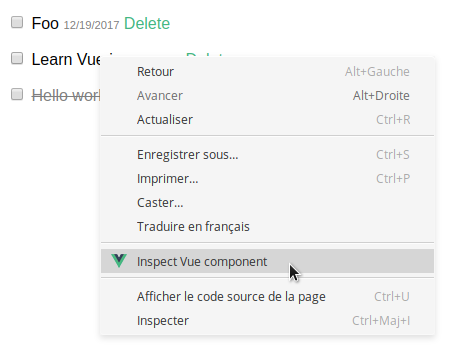 当你打开Vue devtools时,你可以在组件上右击,对这个组件进行检查。