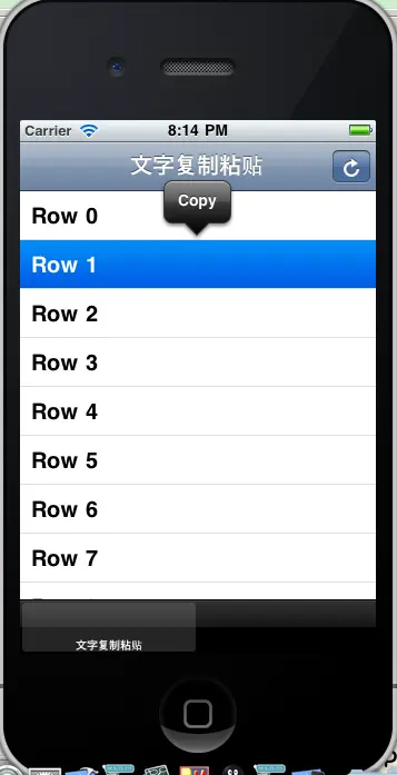 下面通过一个例子,可以在tableview上显示一个快捷菜单,上面只有复制按钮,复制tableview上的数据之后,然后粘贴到title上。