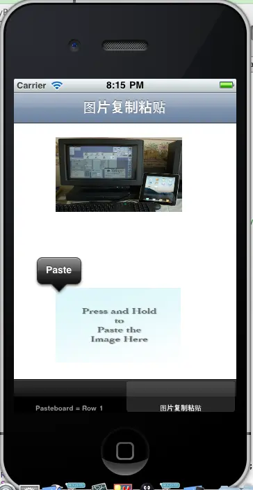 下面通过一个例子,将图片复制和剪贴到另外一个UIImageView中间。