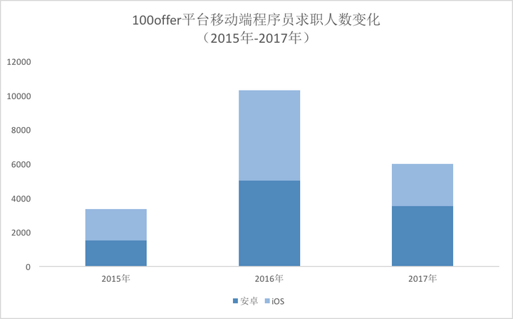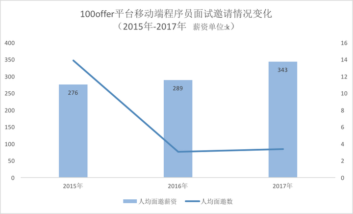 2017年,100offer上移动端(iOS+安卓)程序员平均面邀个数为 4