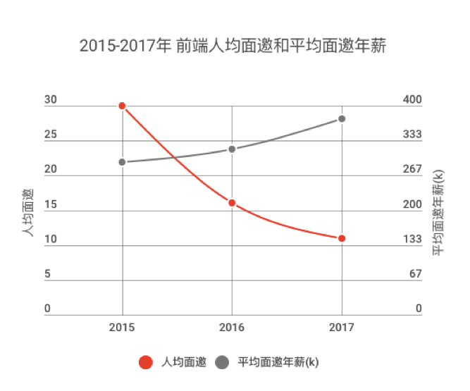 2017年,100offer上的前端平均面邀个数为 11
