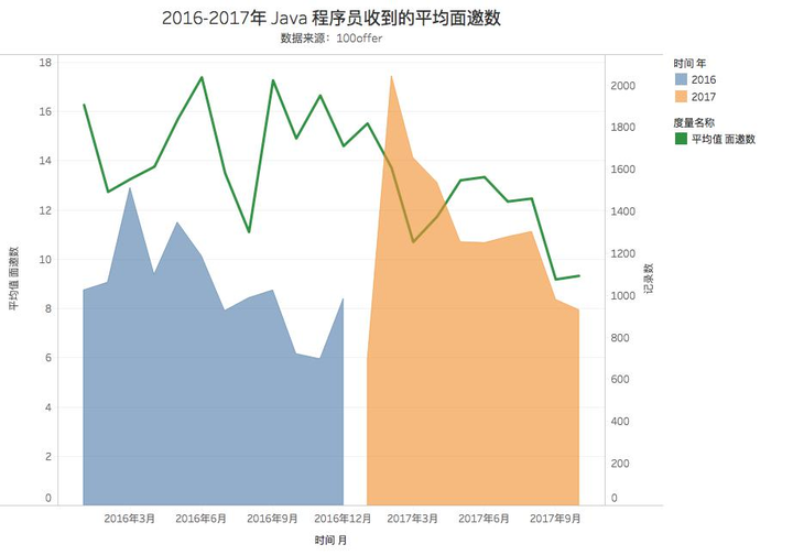 2016年,100offer上的前端平均面邀个数为 16