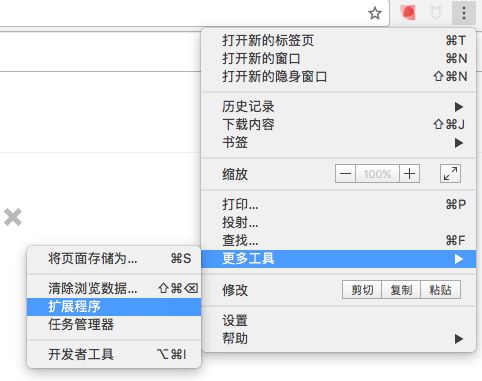 首先点击谷歌浏览器右上角的自定义及控制按钮,在下拉框中选择更多工具选项,然后点击扩展程序 来启动Chrome浏览器的扩展管理器页面。
