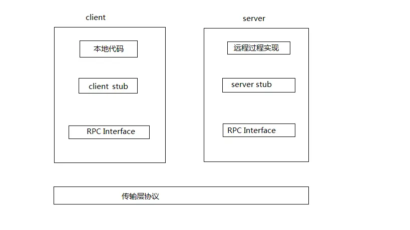 这里有两个关键词,我用黑体标出来了。 分布式:表明了RPC的应用场景,一般是用在多台计算机,而不是单台计算机上。 在不同的地址空间:说明了至少有两个进程,一个服务端进程,一个客户端进程。服务端进程提供服务(暴露出某些接口),客户端进程调用服务。当然测试的时候服务端和客户端程序写在一个文件里面也行,在主线程里面写服务端程序,提供接口,然后新开一个线程写客户端程序,调用接口也是可以的。