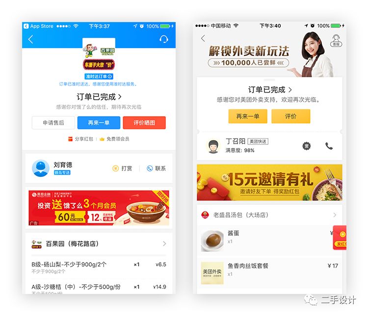 设计师在迭代的时候有时候会将界面的某一功能推翻或者弱化,这时候设计师可能忽略了老用户对此功能的使用习惯,例如饿了么在红包改版的时候,曾经的分享入口是在购买结果页的悬浮球(美团还保持这样的设计形式),改版后红包变成了一个很小的Button。刚改版的时候很多用户反应找不到入口,但是饿了么已经培养出用户点完外卖分享的习惯,所以很多人还是愿意花费时间寻找入口。但是如果换成了其他的App呢,用户还会花费时间寻找吗?