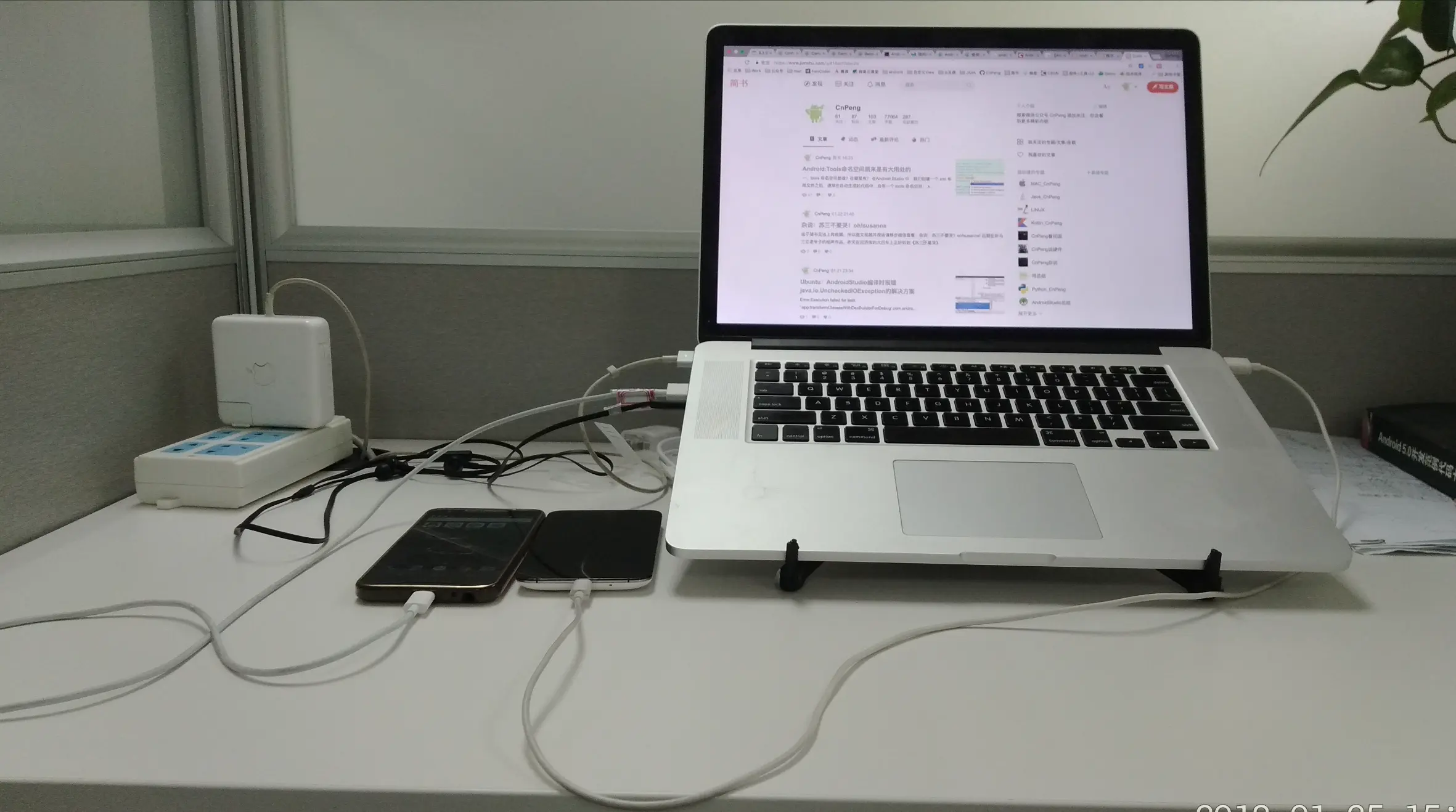 平时我们调试APP的时候,会将手机连接到USB数据线,然后再将数据线连接到电脑上。但是,由于长期插拔或者USB线材材质的问题,经常会出现无法连接的问题;而且,通常公司内会有手机多而线不够用的问题;还有就是,桌面上一堆手机一堆线是不是感觉很乱?就像下图一样