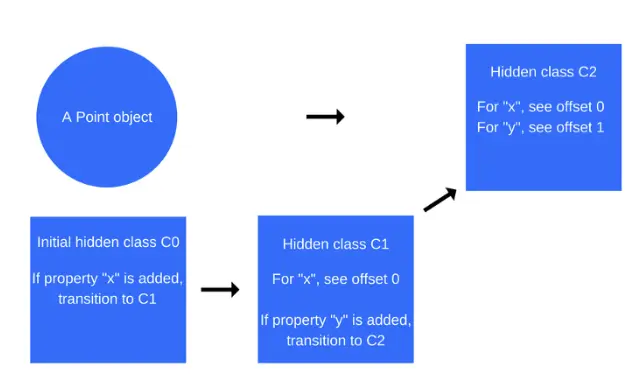 js中并没有指针的概念,js的对象访问就是基于隐藏类的。下面理解下隐藏类