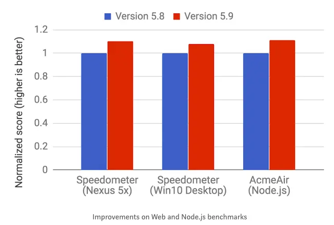 随着2017年早些时候V8 5.9的发布,一个新的执行流程被引入。这个新的管道在实际的JavaScript应用程序中实现了更大的性能改进和显着的内存节省。