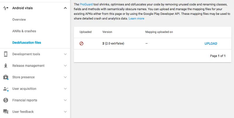 您在 Google Play 控制台发布混淆后的生产 APK时,记得为每个版本上传对应的映射文件。这样的话当您看 ANRs & crashes 页面时,上报的堆栈都会现实真实的类名、方法名和行号而不是缩短的混淆后的那些。