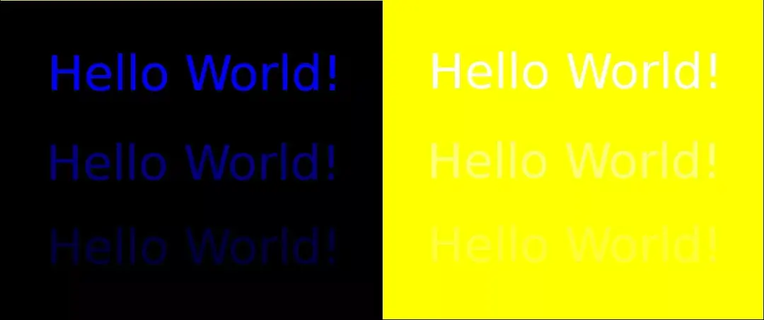 黄色背景上的hello world!文字不易被观察,将上图分别采用libjpeg和guetzli编码后,将蓝色通道转换为灰度图如下图所示:
