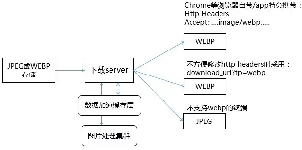 在这个背景下,TEG架构平台部图片存储系统TPS,快速推出了webp解决方案,如下图所示。并在QQ相册、微信朋友圈、微信公众号、QQ看点、腾讯新闻、腾讯视频等公司绝大多数的图片业务开启使用。总共节省了超过500G的带宽,每年成本节省额度大几千万元。