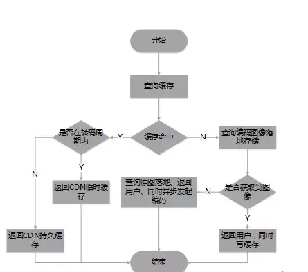 2. 若缓存没有命中,则从存储系统中查询落地的编码图像,若落地图像不存在,则将原图返回给CDN设置临时缓存,同时异步发起图像编码。若已存在则直接将图像返回给CDN且持久缓存