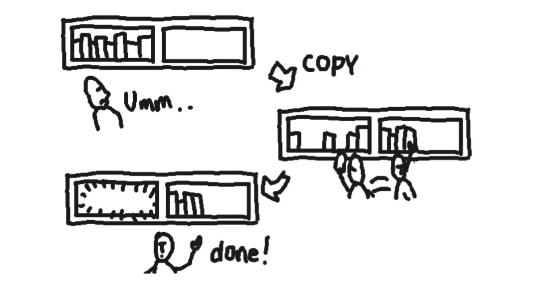 复制算法配合这张图理解起来非常简单,就是只把某个空间的活动对象复制到其他空间。