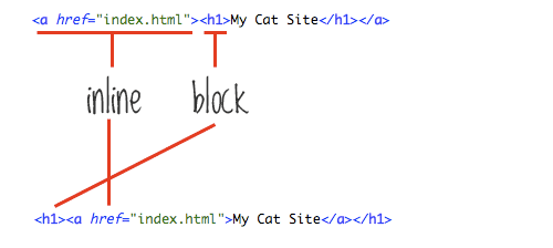 上图的结构我们是常见的,比如说首页的标题,那么我们就应该注意了,不能把“<h1>”放在“<a>”标签中,换句话说,就是不能把块元素放在行内(inline)元素中。上面只是一个例子,只是希望大家在平时的制作中不应该犯这样的超级错误。