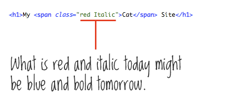 这里所说的命名就是给你的页面中相关元素定义类名或者是ID名,很多同学都有这类的习惯,比如说有一个元素字体是红色的,给他加上“red”,甚至布局都写“left-sidebar”等,但是你有没有想过,如果这个元素定义了“red”后,过几天客户要求使用“蓝色”呢?或者又说,那时的“left-sidebar”边栏此时不想放在左边了,而是想放在右边,那么这样一来我们前面的命名可以说是一点意义都没有了,正如下面的一个图所示: