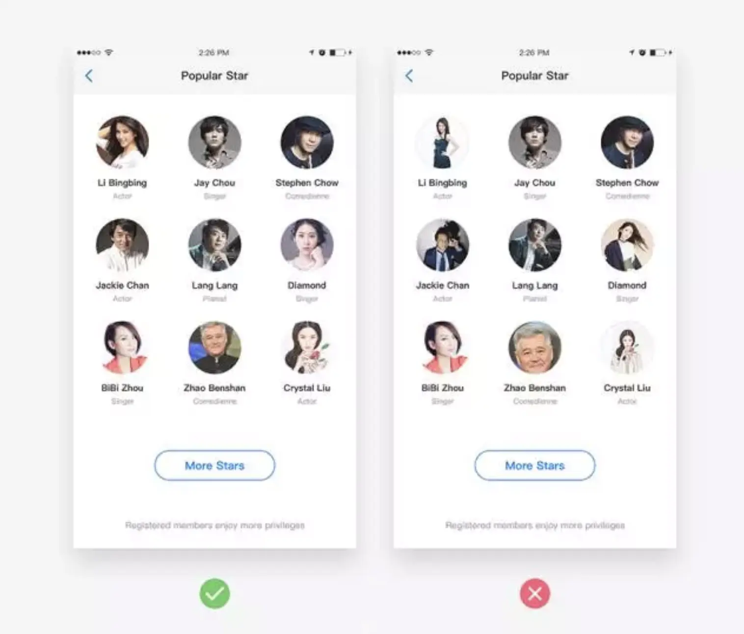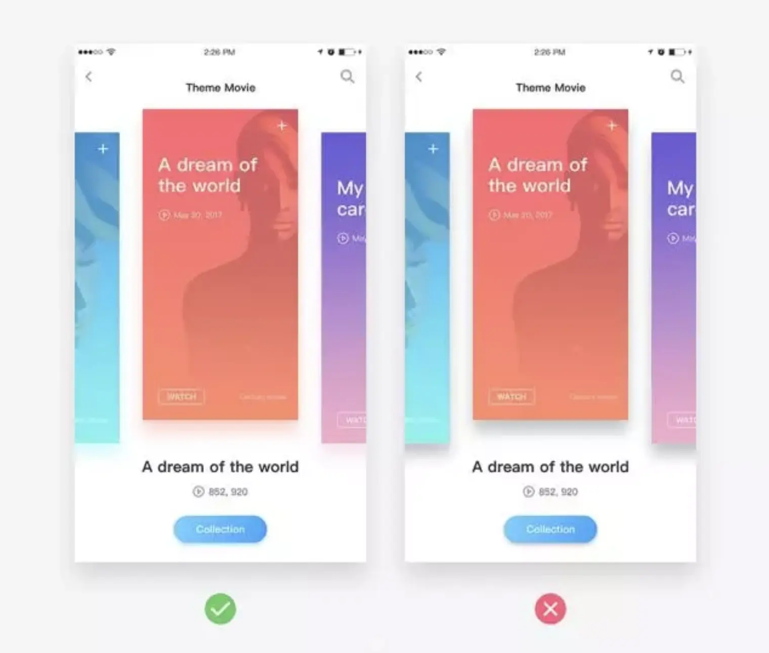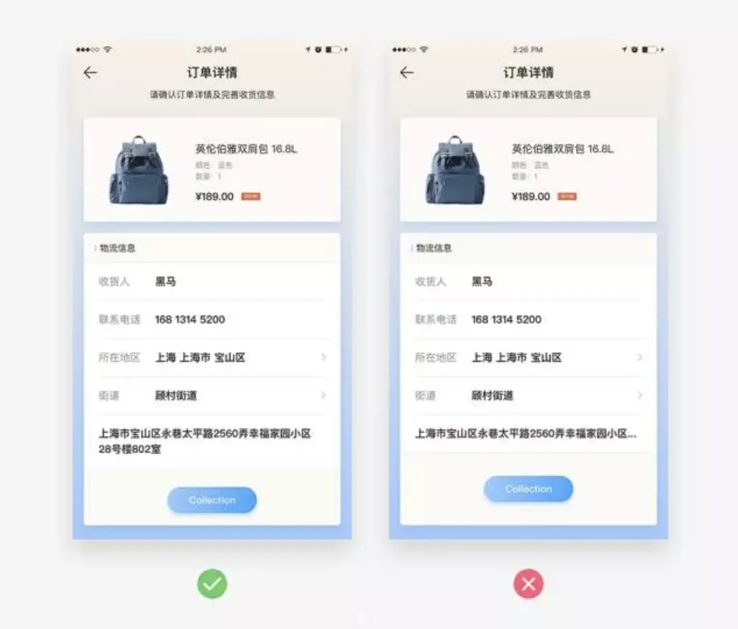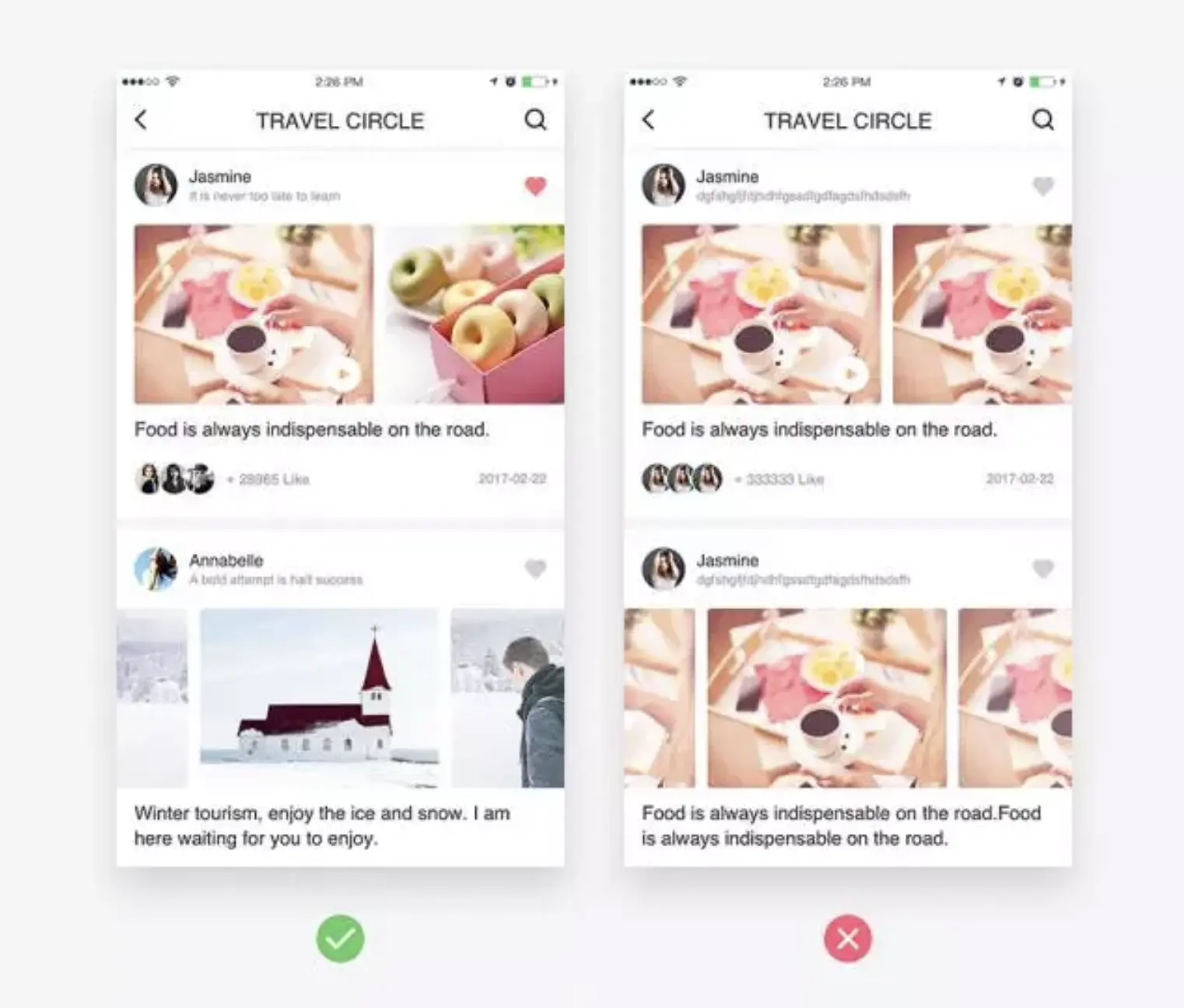 - 经常看到一些设计稿整个界面都是一样的配图,胡乱输入的文案,看起来显得非常的不专业。为了降低视觉落地的差值,我们在设计的时候尽量运用真实有效的信息去填充我们的设计稿,在提案的时候才能给决策者一个还原真实场景的有效方案。