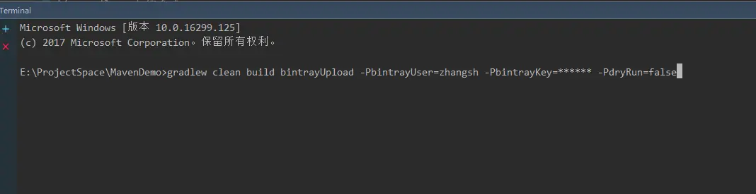 gradlew clean build bintrayUpload -PbintrayUser=zhangsh -PbintrayKey=****** -PdryRun=false