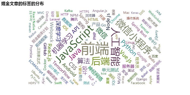 word_cloud = WordCloud('掘金文章的标签的分布','')