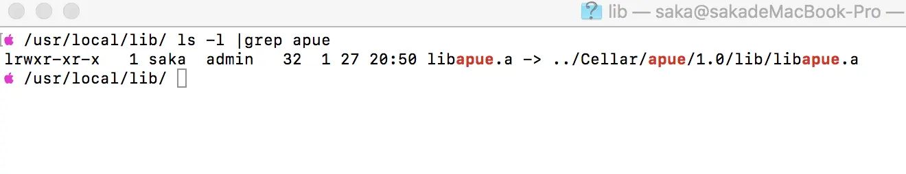 通过brew install apue来安装库,安装成功后,来看一下有没有生成对应的文件