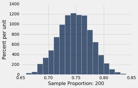 如果随机样本的性质是真的,不管总体如何,它都能成为一个有力的推理工具,因为我们通常不清楚总体中的数据。大型随机样本的均值分布属于这类性质。这就是随机抽样方法广泛用于数据科学的原因。