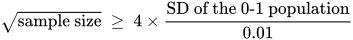 我们愿意容忍1% = 0.01的宽度。因此,使用上一节中开发的公式: