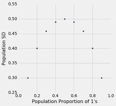 更重要的是,出于我们的目的,标准差随着 1 的比例增加而增加,直到 1 的比例为 0.5;然后开始对称下降。