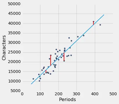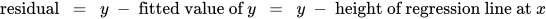 要查看比例在哪里出现,请注意拟合值全部位于回归线上,而y的观测值是散点图中所有点的高度,并且更加可变。