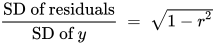 无论散点图的形状如何,残差的标准差是响应变量的标准差的一个比例。 比例是 。