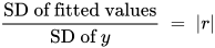 互补的结果是,无论散点图的形状如何,拟合值的标准差是观察值y的标准差的一个比例。比例是|r|。