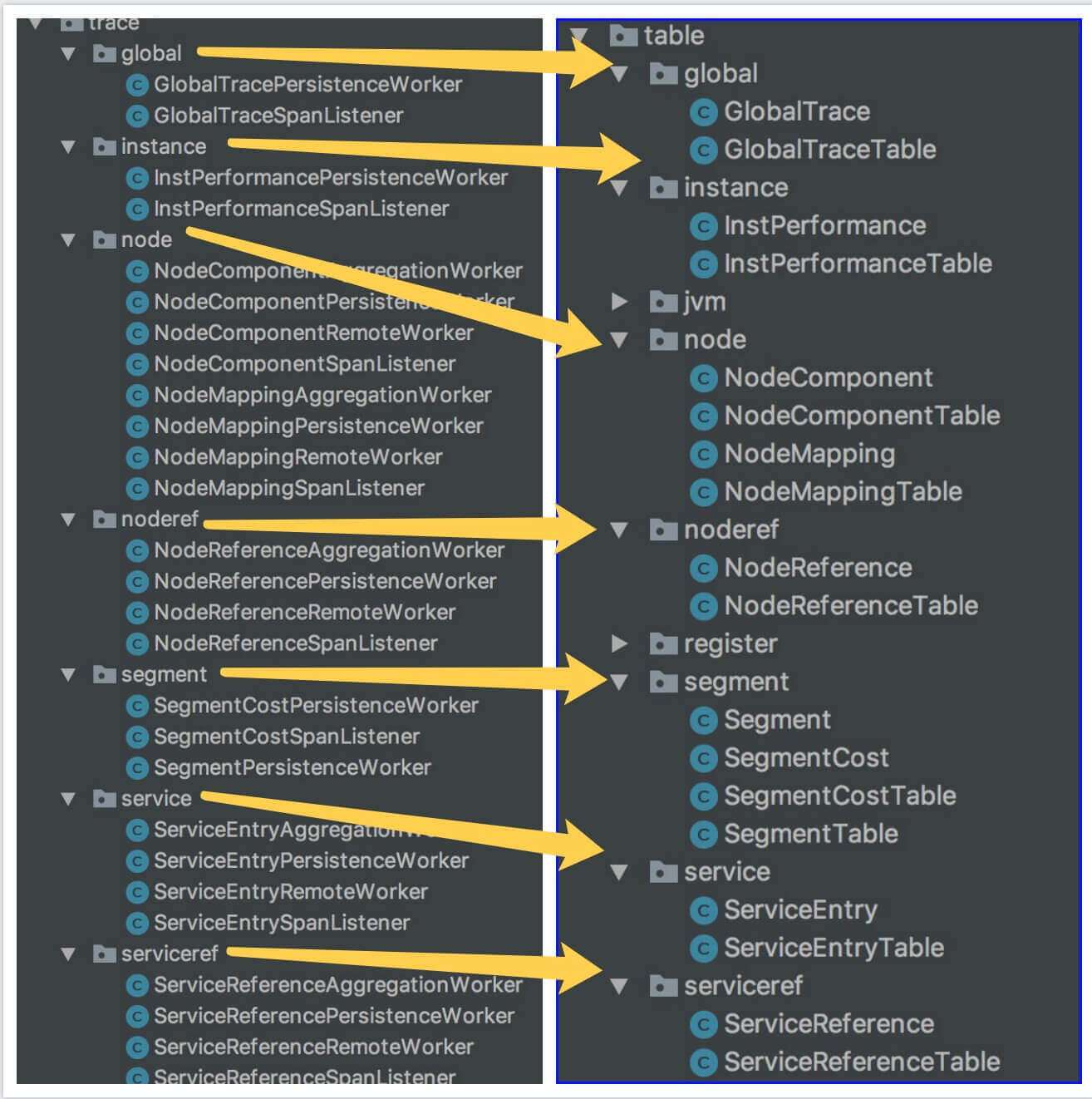 友情提示:Collector 接收到 TraceSegment 的数据,对应的类是 Protobuf 生成的。考虑到更加易读易懂,本文使用 TraceSegment 相关的原始类。