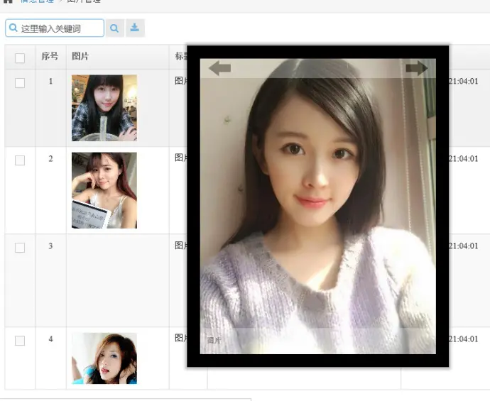 . 图片管理:对批量上传的图片统一管理 ,点击放大,可打开多个,自由切换,绚丽预览效果