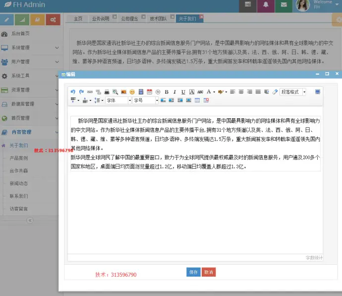 .关于我们:维护关于我们栏目数据,百度富文本框2