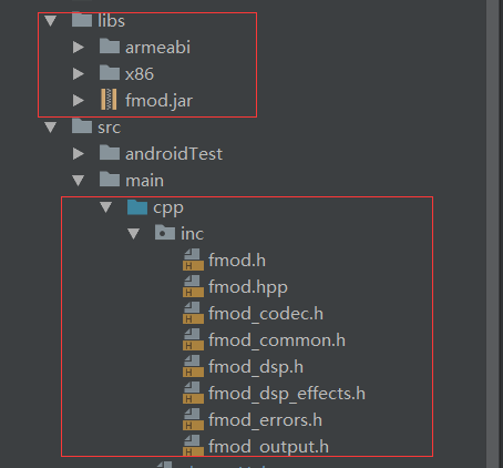 将native方法生成.h文件,includefmod.hpp实现逻辑。